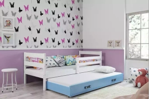 Ausziehbett für Jugendliche Erik, 90x190, mit Schublade, weiß/blau