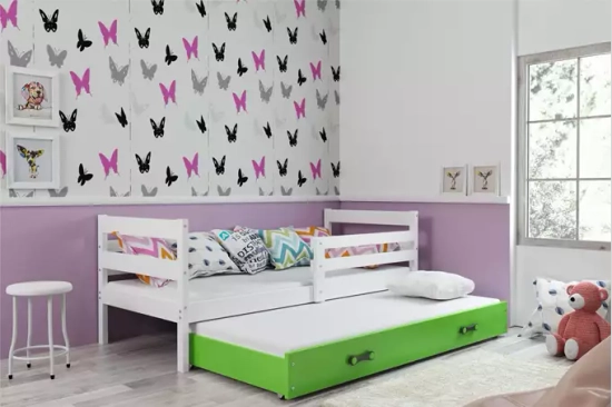 Ausziehbett für Jugendliche Erik, 90x190, mit Schublade, weiß/grün