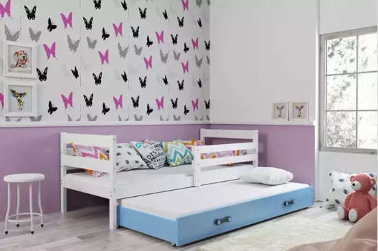Ausziehbett für Jugendliche Erik, 90x190, mit Matratze und Schublade, weiß/blau