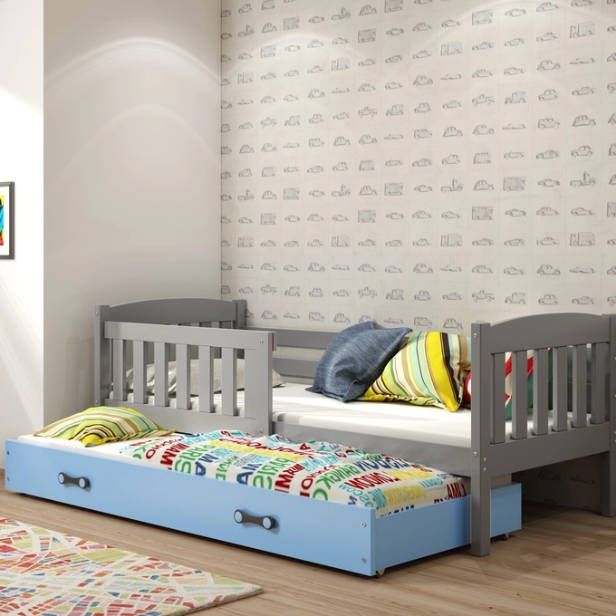 Die Graphitfarbe haben wir erhalten, indem wir die Holzoberfläche mit einer absolut sicheren und antiallergischen Farbe streichen, was das Produkt auch für Kinder mit empfindlicher Haut sicher macht. Die neutrale Farbgebung passt sowohl zum Jungen- als auch zum Mädchenzimmer, wodurch Sie unbequeme Diskussionen mit Ihren Kindern vermeiden. Die Schublade in Blau verleiht dem Bett einen etwas jungenhaften Charakter. Die Größe von 90x190 cm macht es zu einer Investition für Jahre. Perfekt für einen 3-Jährigen und einen Teenager.