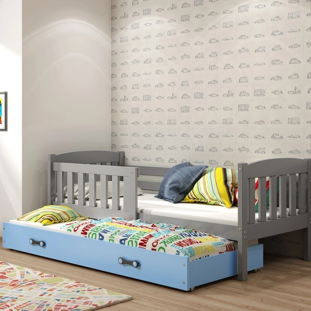 Ausziehbett für Jugendliche Jakob, 90x200, mit Schublade, grau/blau