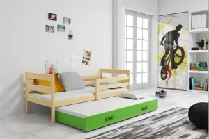 Ausziehbett für Jugendliche Erik, 90x190, mit Matratze und Schublade, Kiefer/grün