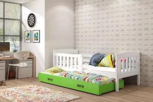 Ausziehbett für Jugendliche Jakob, 90x190, mit Schublade, weiß/grün