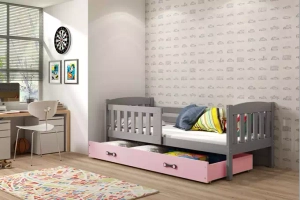 Jugendbett Jakob, 90x190, mit Schublade, grau/rosa