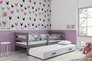 Ausziehbett für Jugendliche Erik, 90x200, mit Matratze und Schublade, grau/weiß