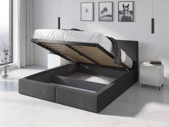 Polsterbett Schlafzimmerbett Doppelbett HILTON 180X200 mit Stauraum, graphit