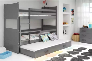 Etagenbett für drei Personen Richard, 90x190, mit Matratze und Schublade, grau