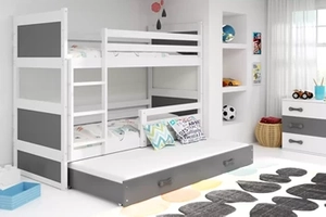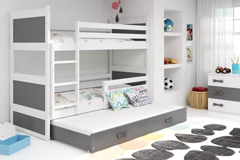 Etagenbett für drei Personen Richard, 90x200, mit Schublade, weiß/grau