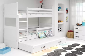 Etagenbett für drei Personen Richard, 90x200, mit Schublade, weiß