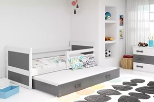 Ausziehbett für Jugendliche Richard, 90x190, mit Schublade, grau/weiß
