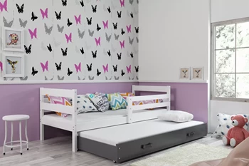 Ausziehbett für Jugendliche Erik, 90x200, mit Schublade, weiß/grau
