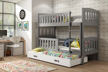 Etagenbett für drei Personen Jakob, 90x190, mit Matratze und Schublade, grau/weiß
