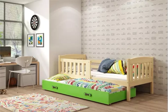Ausziehbett für Jugendliche Jakob, 90x190, mit Matratze und Schublade, Kiefer/grün