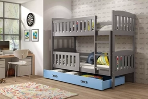 Stockbett für Jugendliche Jakob, 90x190, mit Matratze und Schublade, grau/blau