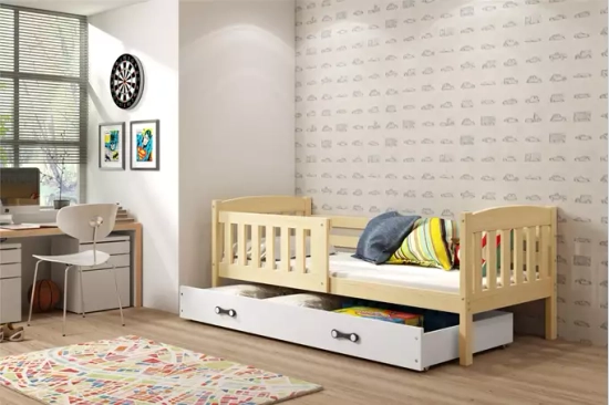 Jugendbett Jakob, 90x190, mit Matratze und Schublade, Kiefer/weiß