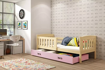 Jugendbett Jakob, 80x190, mit Matratze und Schublade, Kiefer/rosa