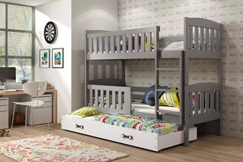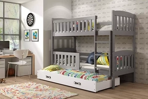 Etagenbett für drei Personen Jakob, 90x200, mit Schublade, grau/weiß