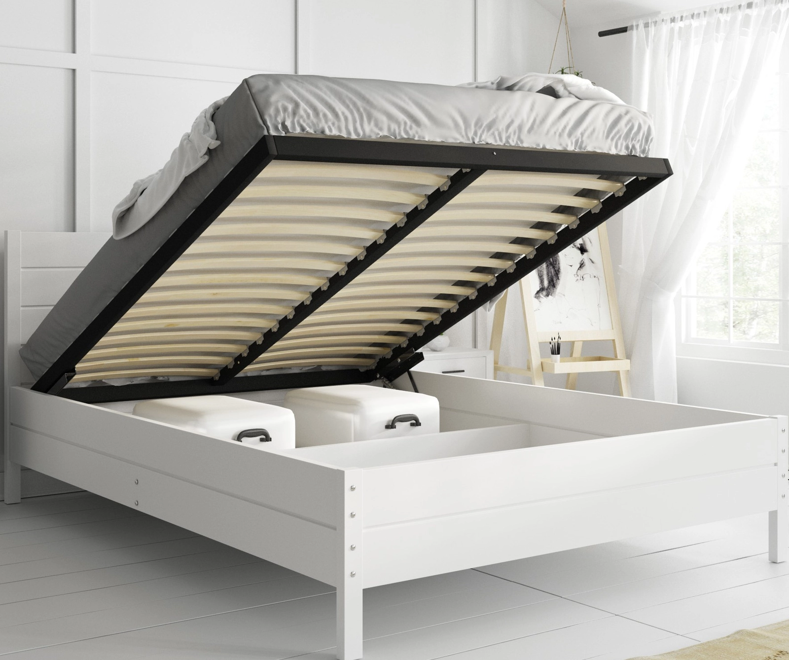 Doppelbett 160x200 – Continental Weiß mit hochklappbarem Lattenrost