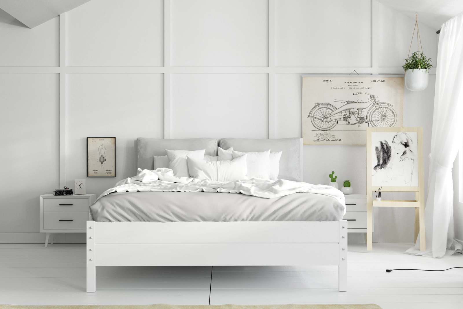 Das Bett Dallas wurde für alle geschaffen, die im Interieur Minimalismus und Eleganz schätzen. Das Möbel besticht durch seine skandinavische Einfachheit und Leichtigkeit, die den Innenraum nicht überwältigt. Weiße Farbe hellt kleine Räume auf und eignet sich daher hervorragend für unsere Wohnungen. Diese Option ist universell und passt sowohl in das Zimmer der Eltern als auch der Teenager.