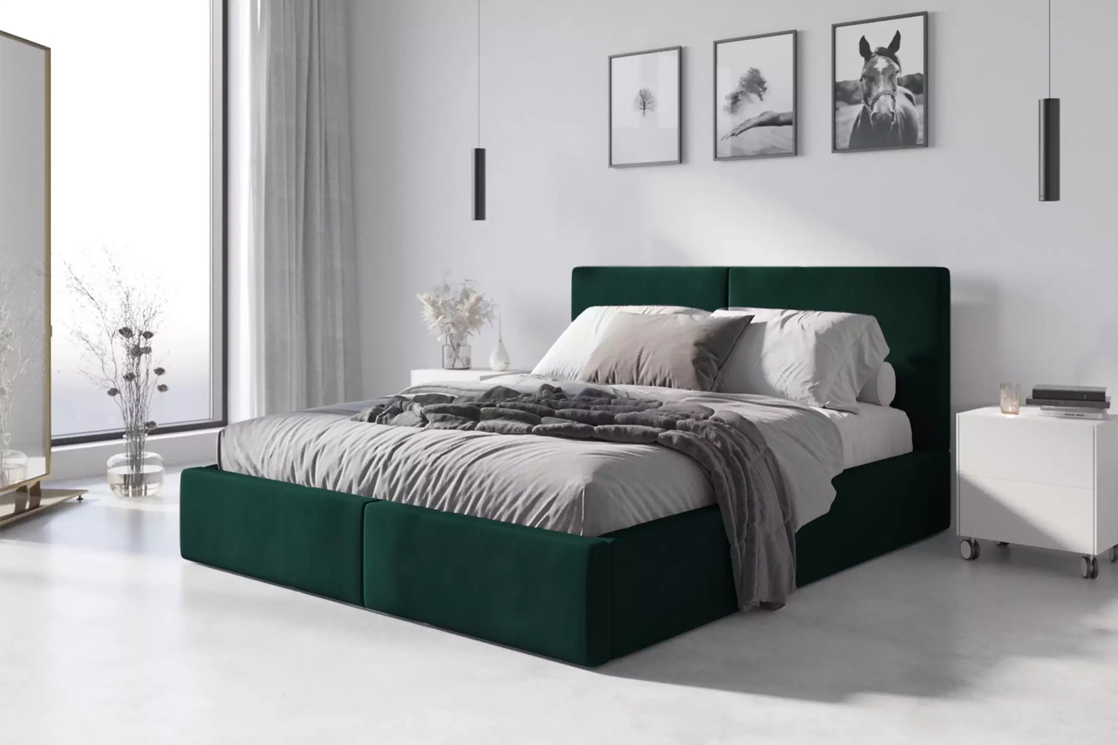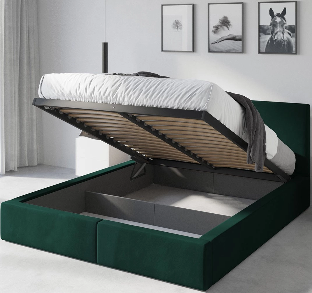 Polsterbett Schlafzimmerbett Doppelbett HILTON 120X200 mit Stauraum, grün