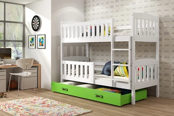 Stockbett für Jugendliche Jakob, 90x190, mit Matratze und Schublade, weiß/grün