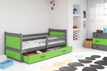 Jugendbett Richard, 90x200, mit Schublade, grau/grün