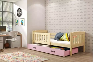 Jugendbett Jakob, 90x190, mit Schublade, Kiefer/rosa