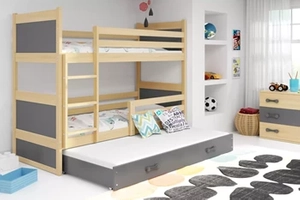 Etagenbett für drei Personen Richard, 90x200, mit Schublade, Kiefer/grau
