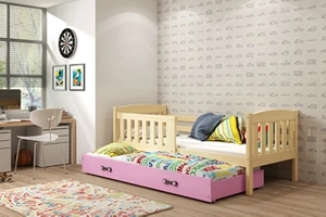 Ausziehbett für Jugendliche Jakob, 90x200, mit Matratze und Schublade, Kiefer/rosa