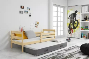 Ausziehbett für Jugendliche Erik, 80x190, mit Schublade, Kiefer/grau