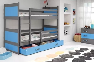 Stockbett für Jugendliche Richard, 90x200, mit Schublade, grau/blau