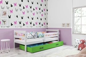 Jugendbett Erik, 90x190, mit Schublade, weiß/grün