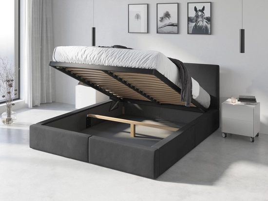 Polsterbett Schlafzimmerbett Doppelbett HILTON 160X200 mit Stauraum, graphit