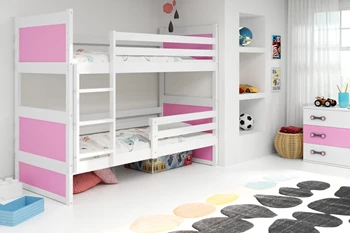 Stockbett für Jugendliche Richard, 90x200, mit Matratze, weiß/rosa