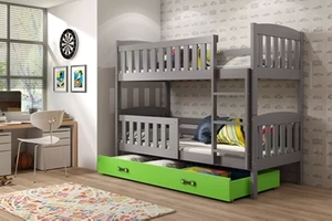 Stockbett für Jugendliche Jakob, 90x200, mit Matratze und Schublade, grau/grün