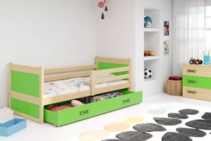 Jugenbett Richard, 80x190, mit Schublade, Kiefer/grün
