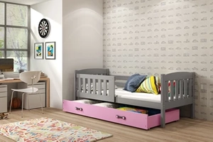 Jugendbett Jakob, 90x200, mit Matratze und Schublade, grau/rosa