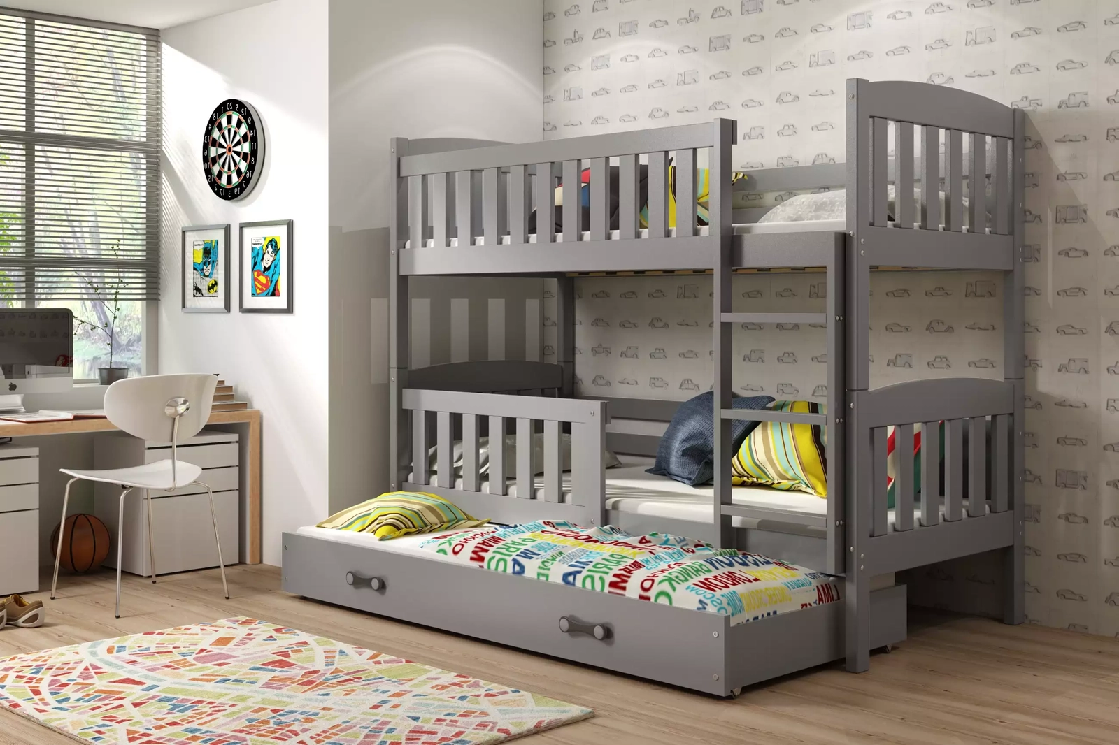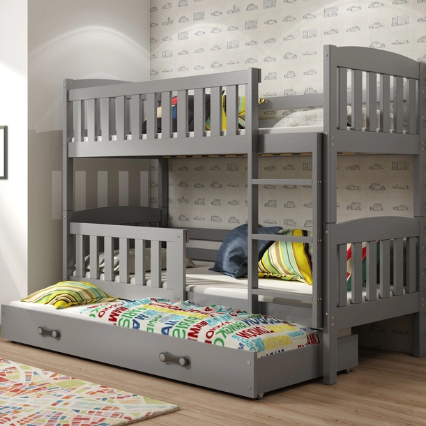 Etagenbett für drei Personen Jakob, 90x200, mit Schublade, grau