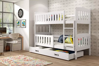 Etagenbett für drei Personen Jakob, 90x190, mit Matratze und Schublade, weiß