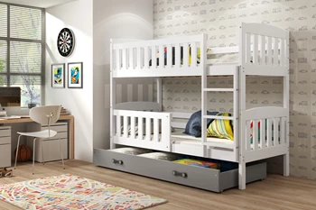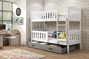 Stockbett für Jugendliche Jakob, 90x190, mit Matratze und Schublade, grau/weiß
