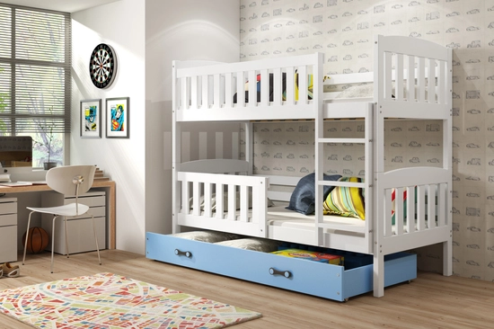 Stockbett für Jugendliche Jakob, 90x190, mit Matratze und Schublade, weiß/blau