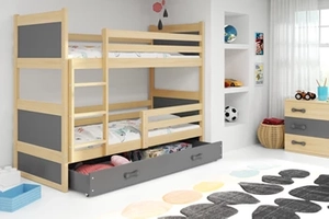 Stockbett für Jugendliche Richard, 90x200, mit Schublade, Kiefer/grau