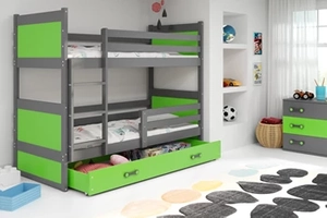 Stockbett für Jugendliche Richard, 90x200, mit Matratze und Schublade, grau/grün