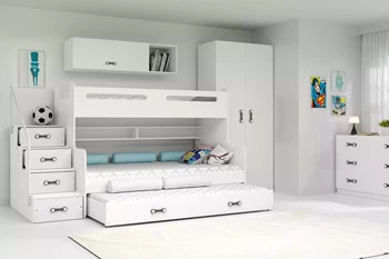 Etagenbett für drei Personen Max 3, 120x200, mit Schublade, weiß
