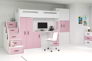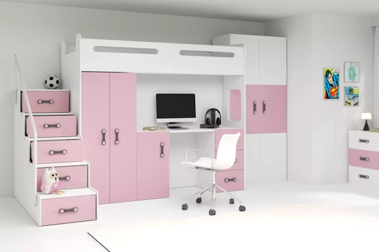 Jugendbett Max 4, 80x200, mit Schreibtisch, rosa