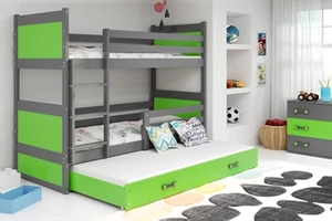 Etagenbett für drei Personen Richard, 90x200, mit Matratze und Schublade, grau/grün