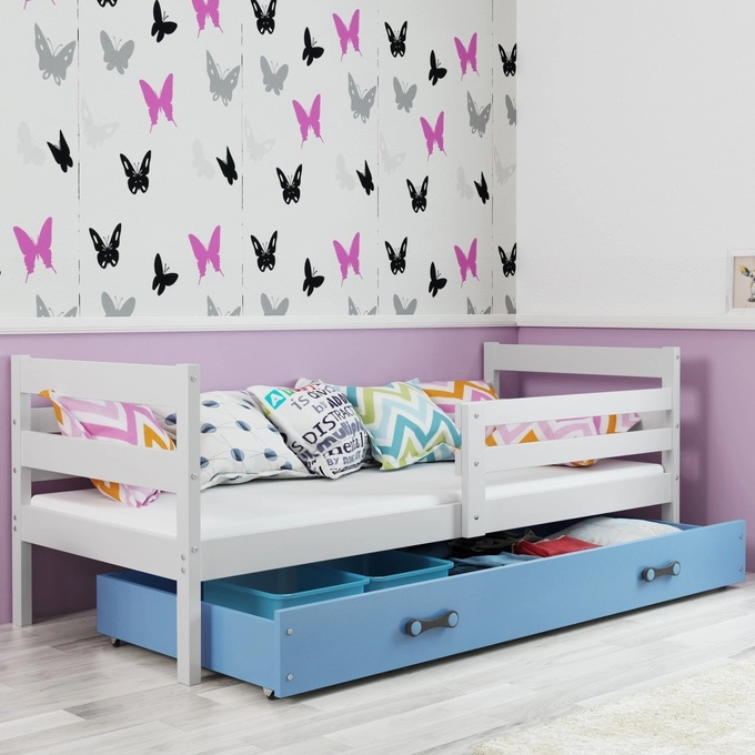 Jugendbett Erik, 90x190, mit Matratze und Schublade, weiß/blau