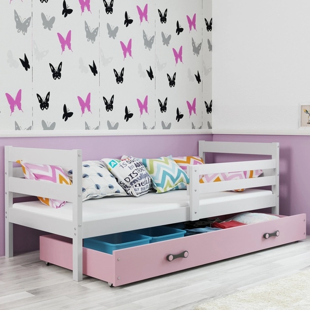 Jugendbett Erik, 90x190, mit Matratze und Schublade, weiß/rosa