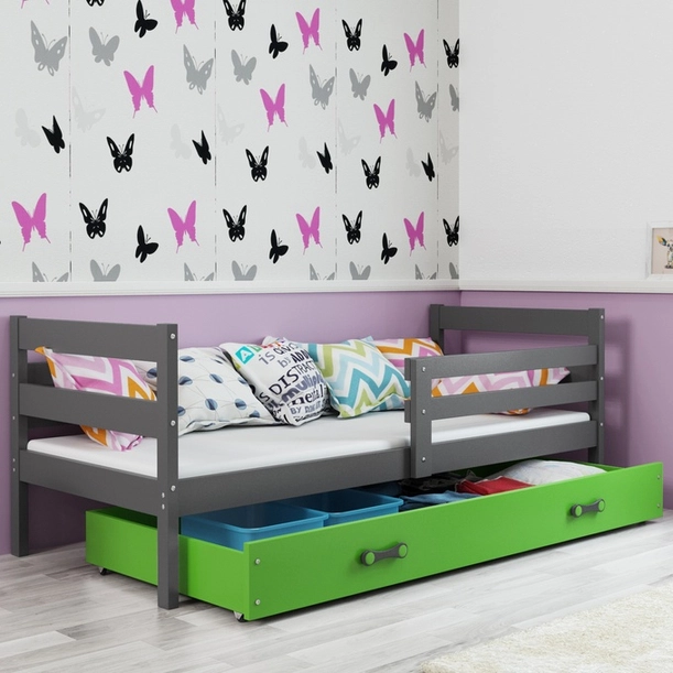 Jugendbett Erik, 90x190, mit Schublade, grau/grün