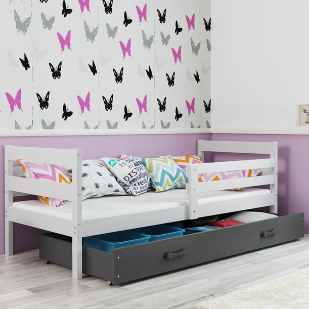 Jugendbett Erik, 90x190, mit Schublade, weiß/grau